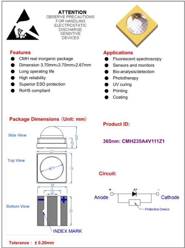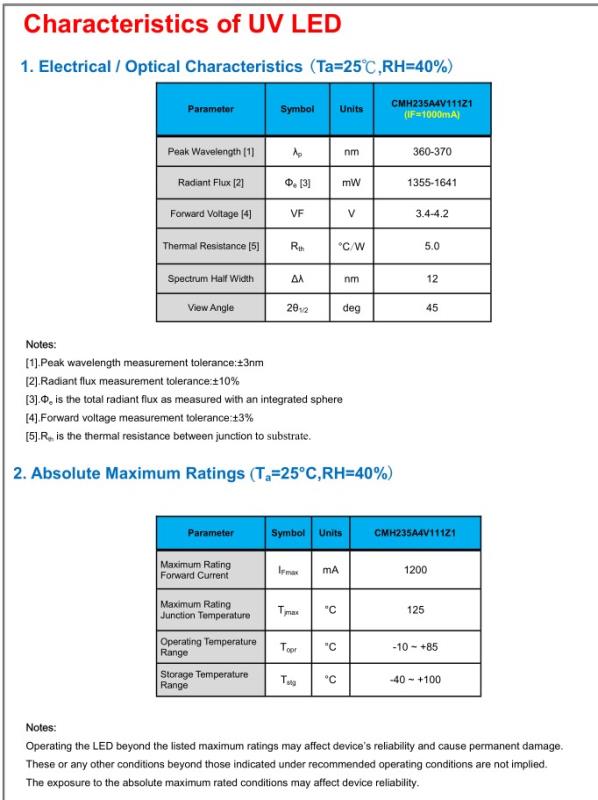 ●请谨慎处理任何UVLEDs驱动的低或高电流。