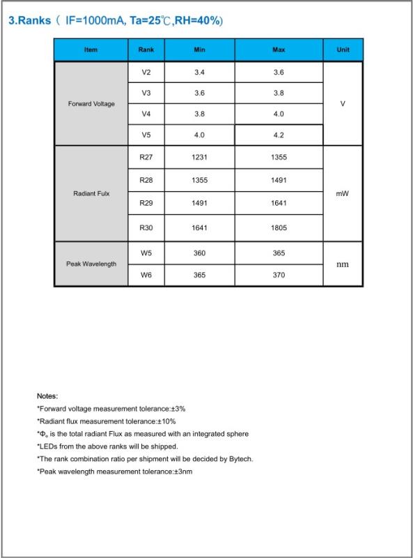 Peak Wavelength 波长:360-420nm 可选