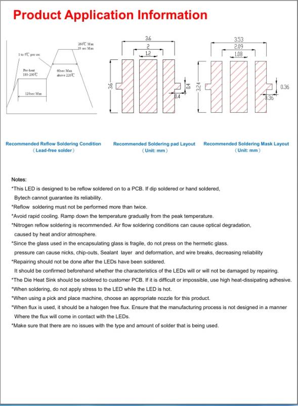 *此LED设计为回流焊接到印刷电路板上。如果是浸焊或手工焊,我们无法保证其可靠性。
